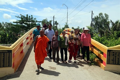 | Des habitants de Kiên Giang bénéficient d'un pont solidement construit grâce à des investissements mobilisés. |