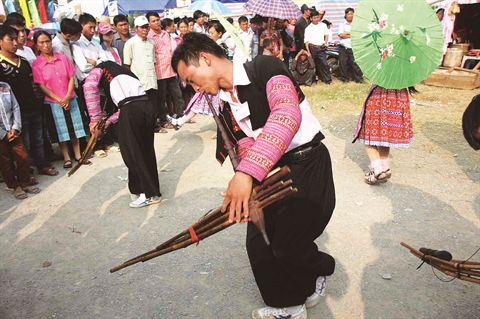 | Le khèn (flûte allongée en bambou) est un instrument incontournable chez les H’Mông du plateau de Môc Châu. Photo : Phuong Hoa/VNA/CVN |
