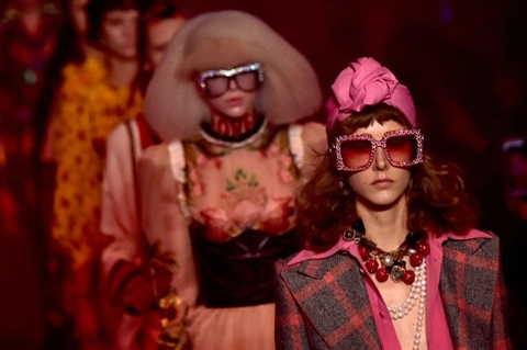 Les anciens entrepôts ferroviaires délabrés, qui avaient déjà accueilli les premiers défilés du nouveau directeur créatif Alessandro Michele, ont été cette fois transformés en bonbonnière rose étincelante.