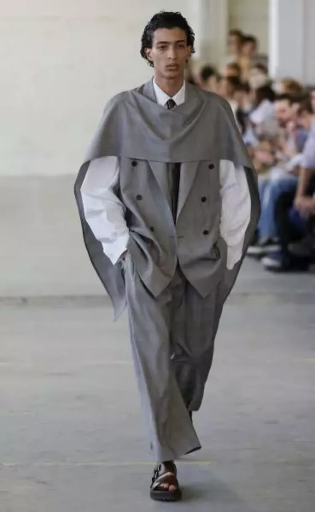 Le créateur israélien Hed Mayner a, lui, présenté une collection à l'approche "quasi anti-structurelle du vêtement", selon sa note d'intention.