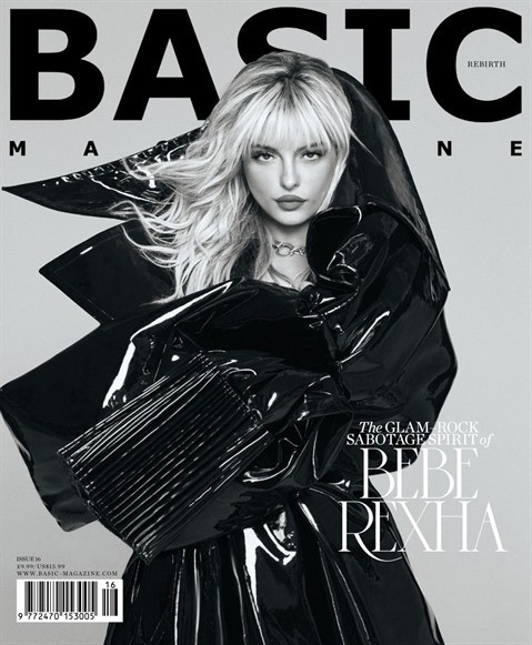 | Bebe Rexha porte le manteau surdimensionné en cuir noir de marque Công Tri sur la Une du magazine "Basic". |