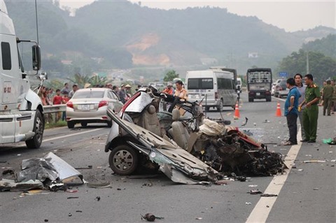 | Lieux d'un accident sur l'autoroute Hoà Lac - Hoà Binh (Nord), le 31 mars. |