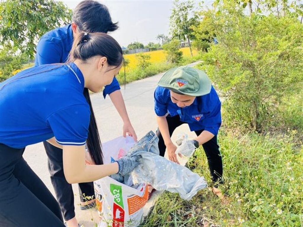 | Dans toute la province de Tây Ninh, les jeunes ont participé à l'opération "Dimanche vert", ramassant les déchets pour contribuer à la protection de l'environnement. |