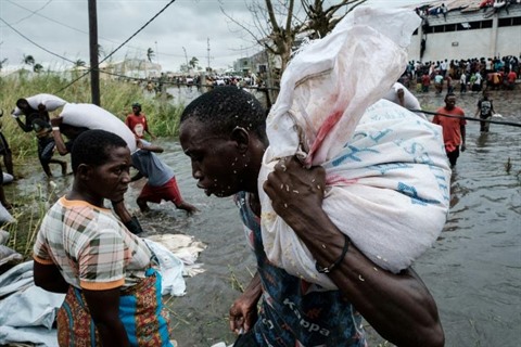 | Scène de pillage de riz d'un entrepôt encerclé par les eaux après le passage du cyclone Idai, à Beira, au Mozambique le 20 mars. Photo: AFP/VNA/CVN |