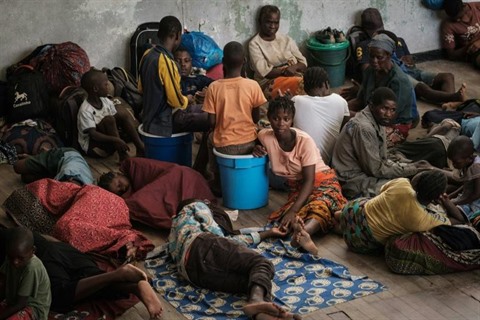 | Des personnes touchées par le passage du cyclone Idai trouvent refuge dans une école à Beira, au Mozambique le 21 mars. |