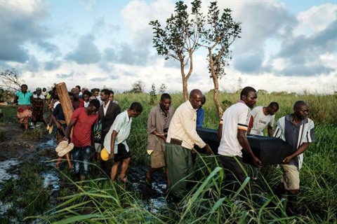 | Funérailles à Beira, au Mozambique, le 20 mars après le passage du cyclone Idai. |
