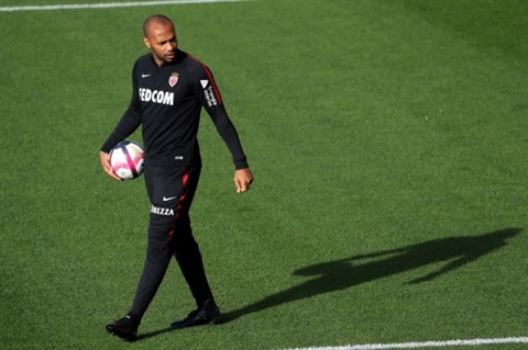 | Le nouvel entraîneur de Monaco, Thierry Henry, à l'entraînement à La Turbie, le 18 octobre 2018. |
