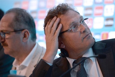 | Le secrétaire général de la FIFA, Jérôme Valcke, lors d'une conférence de presse, le 25 avril à Rio de Janeiro. Photo : AFP/VNA/CVN |