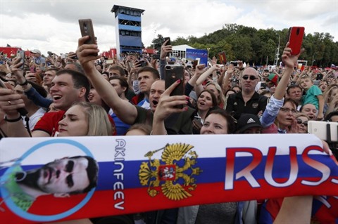 | Des milliers de supporters sont venus à Moscou pour remercier leur joueurs. |
