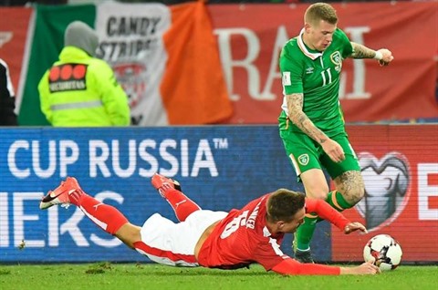 | L'attaquant irlandais James McClean a offert la victoire à l'Eire face à l'Autriche à Vienne, le 12 novembre 2016. |