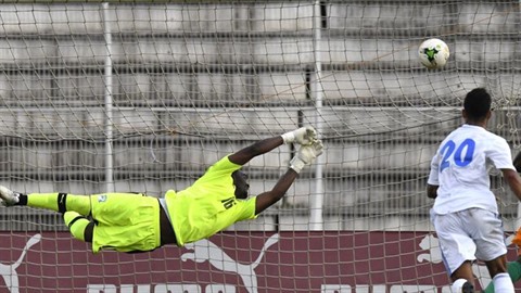| Le gardien Sylvain Gbohouo s'incline avec la Côte d'Ivoire devant le Gabon en qualifications du Mondial-2018, le 5 septembre à Bouaké. |