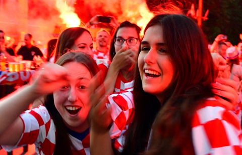 | Les supporteurs croates fêtent leur victoire en quarts de finale contre la Russie le 8 juillet à Zagreb. |