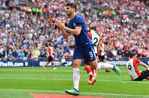 | L'attaquant espagnol de Chelsea Alvaro Morata vient de marquer contre Southampton en demi-finale de la Coupe d'Angleterre, le 22 avril à Wembley. |