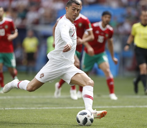 Auteur déjà d'un triplé contre l'Espagne (3-3), Ronaldo (152 sélections) a frappé dès la 4e minute contre le Maroc et repris seul la tête du classement des buteurs.
