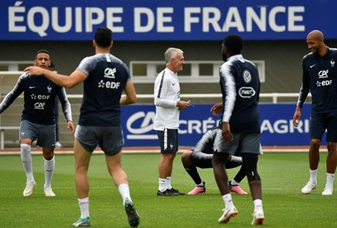 | L'équipe de France à l'entraînement à Clairefontaine, le 6 juin. |