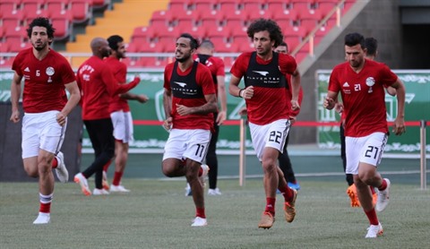 | L'équipe d'Égypte à l'entraînement à Grozny, le 12 juin. |