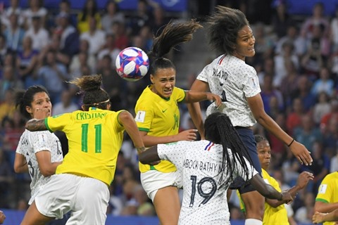 | Wendie Renard et les Françaises, ici face au Brésil au Havre, le 23 juin, ont fait de grosses audiences télé pendant de la Coupe du monde. |