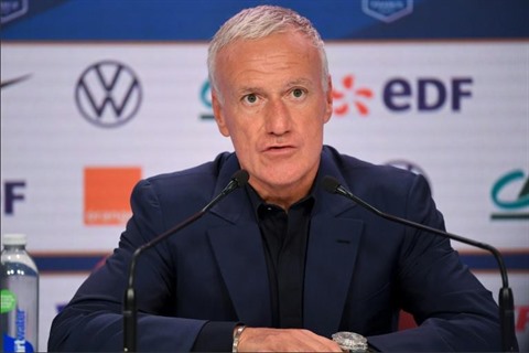 | Didier Deschamps lors de la conférence de presse de présentation des joueurs français convoqués pour la Coupe du monde au Qatar 2022, dans les locaux de la Fédération française de football à Paris le 26 août. |