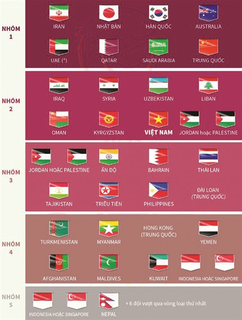 Le tirage au sort des groupes des éliminatoires du Mondial 2022 pour la région Asie devrait avoir lieu le 17 juillet à Doha (Qatar) à travers un système de têtes de série. Cinq chapeaux comptant chacun huit équipes seront déterminés sur la base du classement FIFA des nations qualifiées.