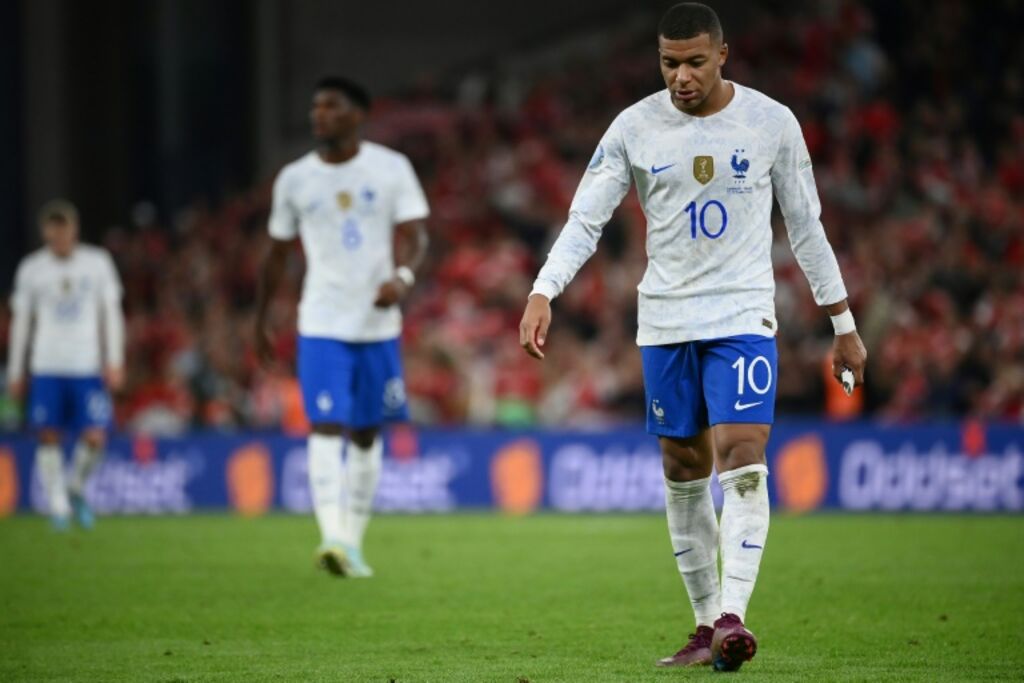 | L'attaquant de l'équipe de France, Kylian Mbappé, lors du match perdu contre le Danemark en Ligue des nations, le 25 septembre à Copenhague. |