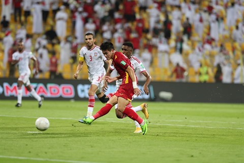 | L'attaquant Tiên Linh marque un but lors du match contre les Émirats arabes unis, le 15 juin. |