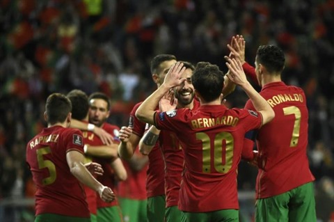 | Les Portugais vainqueurs de la Turquie sans trembler en barrages du Mondial à Porto, le 24 mars 2022. |