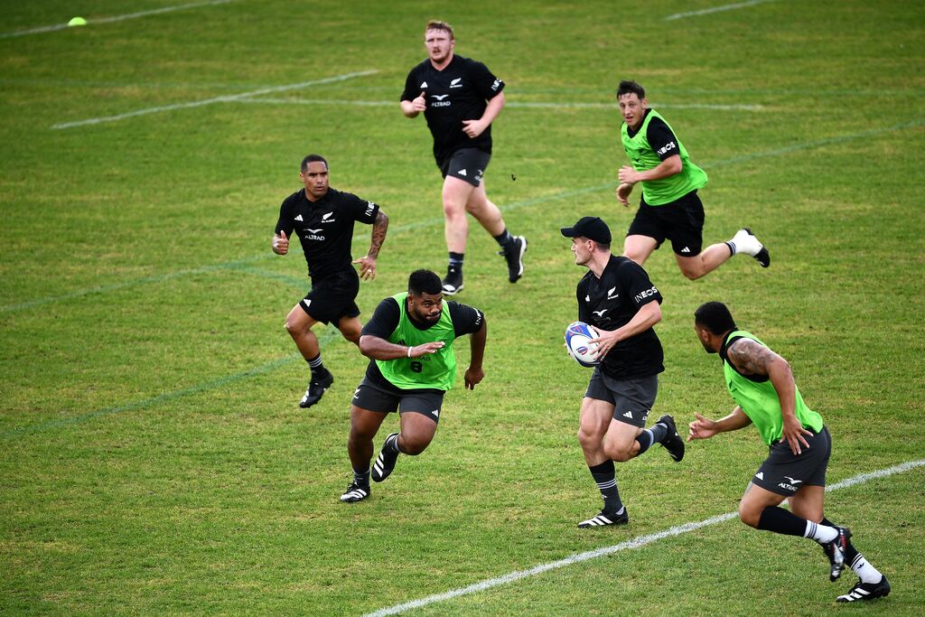 | Les rugbymen néo-zélandais s'entraînent au stade Chaban-Delmas de Bordeaux, le 18 septembre. |