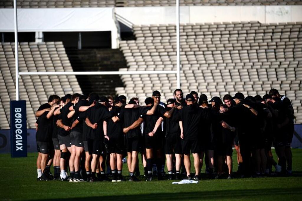 | Les All Blacks néo-zélandais lors d'un entraînement au stade Chaban-Delmas de Bordeaux, le 18 septembre. |