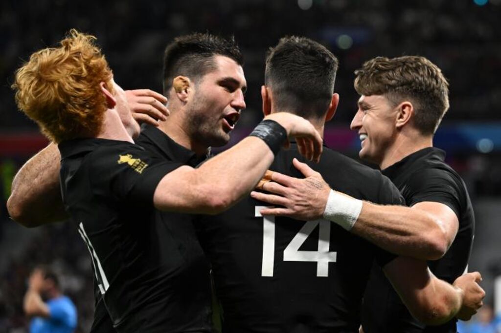 Ils ont néanmoins sécurisé dès la mi-temps le point de bonus offensif et leur qualification grâce à des essais de Mo'unga (25e) encore après une mêlée, Will Jordan (34e), magnifiquement servi par McKenzie intenable, et Roigard (38e) toujours après une mêlée.