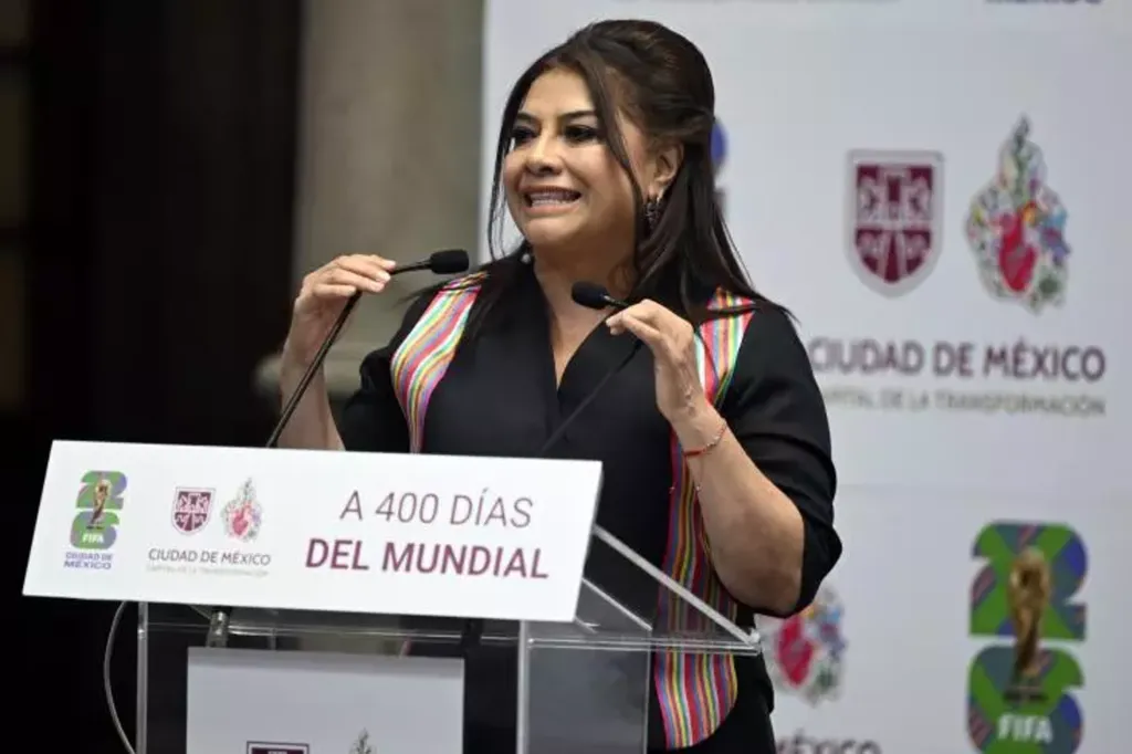 | La maire de Mexico, Clara Brugada, s'exprime lors de la présentation du programme et du comité d'organisation de la Coupe du monde de la FIFA 2026 à Mexico, le 7 mai. |