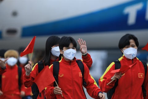| Les joueurs vietnamiens arrivent aux Philippines. Photo : vff.org.vn/CVN |