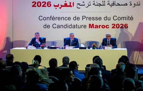 | Le Maroc, candidat à l'organisation du Mondial-2026, ici lors de la conférence de presse de son comité à Casablanca, le 23 janvier. |