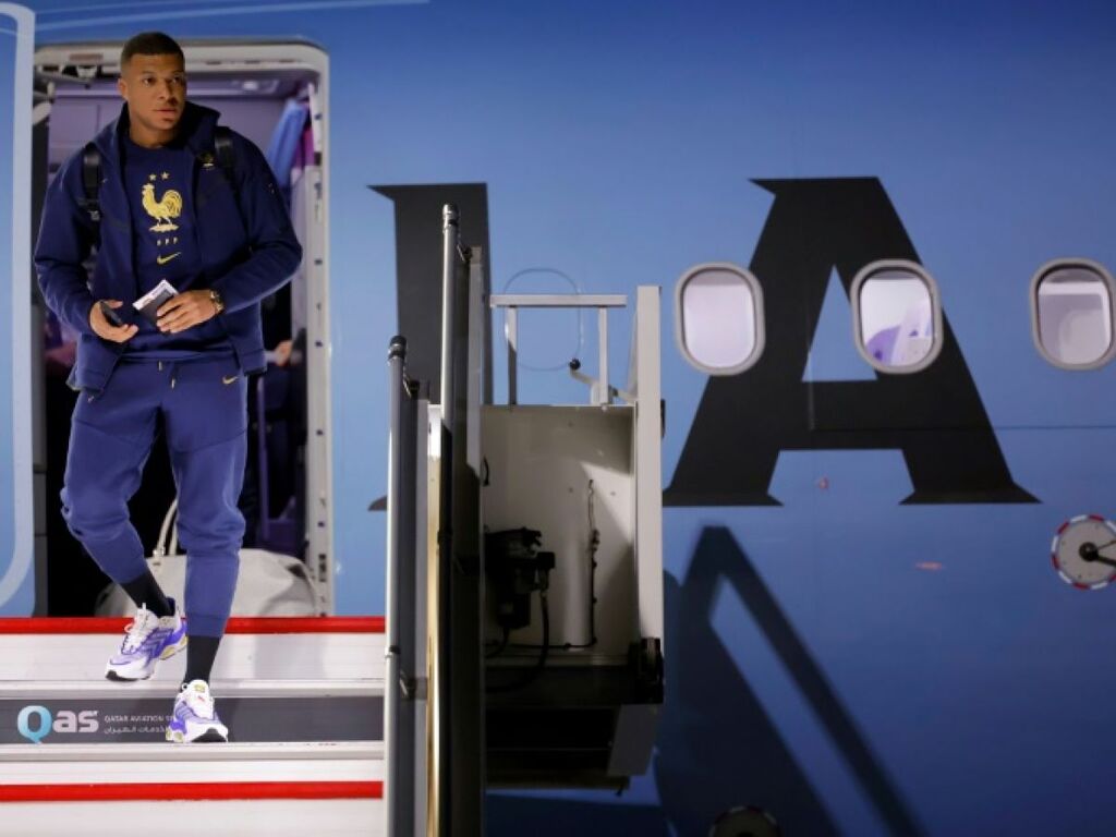 | L'attaquant de l'équipe de France, Kylian Mbappé, à son arrivée à l'aéroport de Doha, le 16 novembre. |