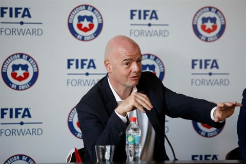 | Le président de la FIFA, Gianni Infantino, lors d'un point presse au siège de la Fédération chilienne de football à Santiago, le 17 octobre. |