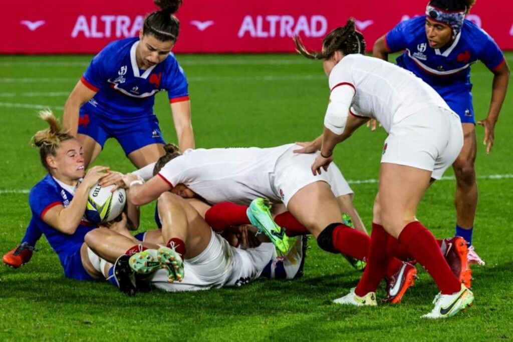 Après leur large victoire inaugurale contre l'Afrique du Sud (40-5), les Bleues ont été portées samedi 15 octobre par leur troisième ligne Marjorie Mayans (24 plaquages au total, dont 17 en première période), impeccable pour sa 50e sélection, face à des "Red Roses" qui sont malgré tout parvenues à enchaîner leur 27e succès d'affilée, un record.