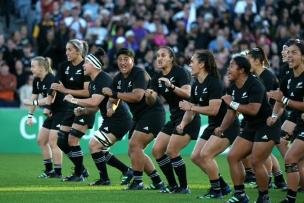 | Le haka des Néo-zélandaises avant le coup d'envoi de la finale de la Coupe du monde, qu'elles vont remporter face aux Anglaises, le 12 novembre à l'Eden Park d'Auckland. |