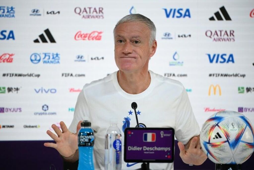 | Le sélectionneur de l'équipe de France Didier Deschamps en conférence de presse à Doha, le 25 novembre. |