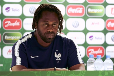 | L'entraîneur des moins de 20 ans en conférence de presse à Vaasa en Finlande le 26 juillet 2018. |
