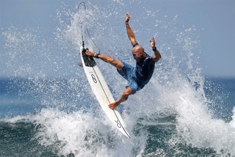 | L'Américain Kelly Slater sur l'île Bali en Indonésie le 19 mai. |