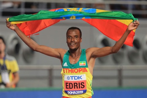 | L'Éthiopien Muktar Edris remporte le 5.000m aux Mondiaux de Doha le 30 septembre. |