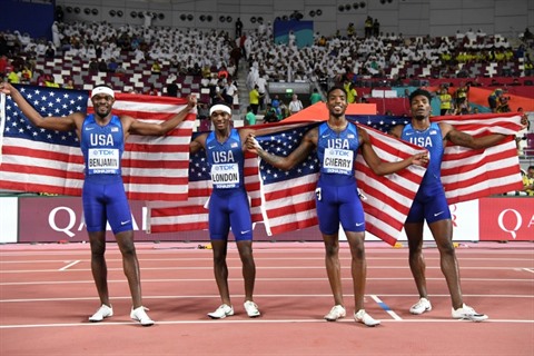 | Les États-Unis remportent le relais 4x400m aux Mondiaux de Doha le 6 octobre. |