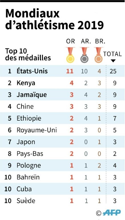 C'est bien simple, sur les 17 éditions des Championnats du monde, seules quatre ont échappé à la domination implacable des États-Unis (1983, 1987, 2001, 2015). Celle disputée au Qatar a donc été fidèle à la tradition avec 29 podiums dont 14 victoires, comme en 2007 à Osaka et 2005 à Helsinki.