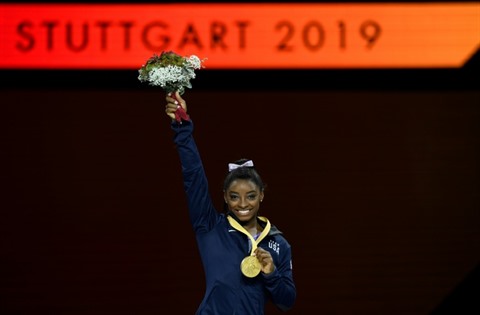 >>Mondiaux de gym : Biles reçue cinq sur cinq