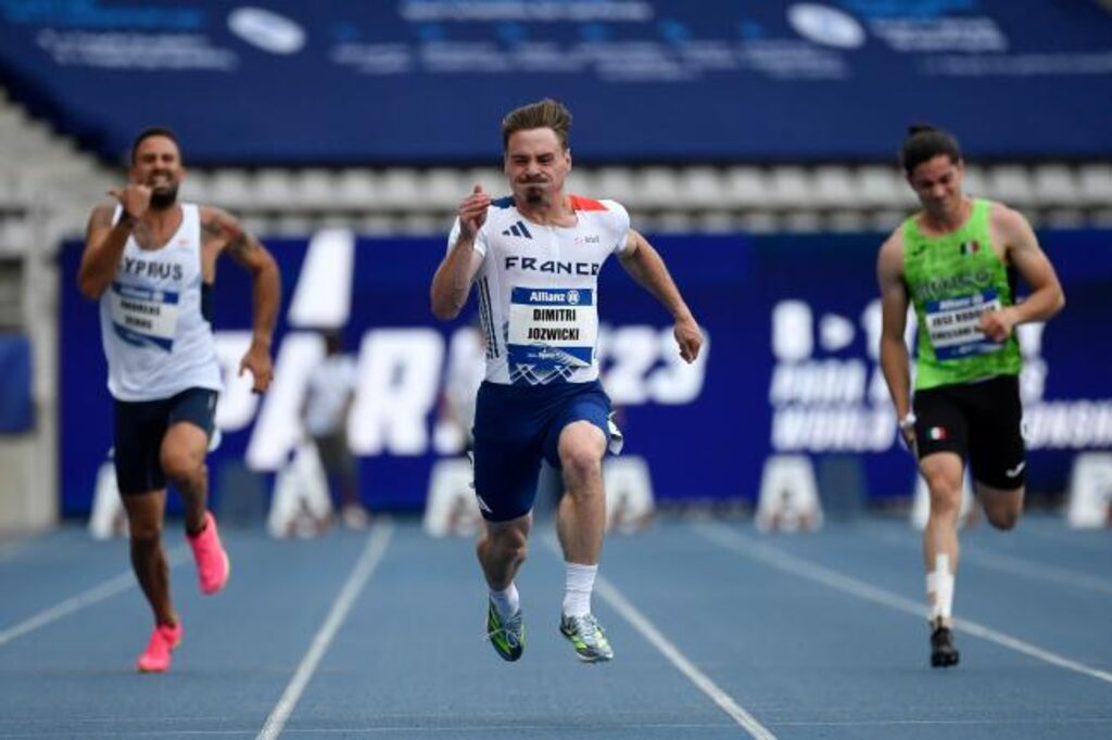 | Le Français Dimitri Jozwicki lors d'une série du 100m T38 aux Mondiaux de para athlétisme de Paris, le 9 juillet. |