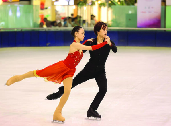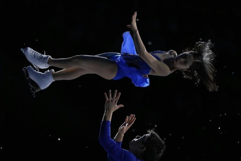 | Les Japonais Riku Miura et Ryuichi Kihara lors du Gala d'exhibition aux Quatre continents à Colorado Springs (Colorado, aux États-Unis), le 12 février. |