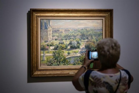| Le tableau "Les Tuileries" de Claude Monet au Musée d'art moderne de Fontevraud-l'Abbaye lors de l'exposition "Métamorphoses dans l'art de Claude Monet", le 15 juin. |