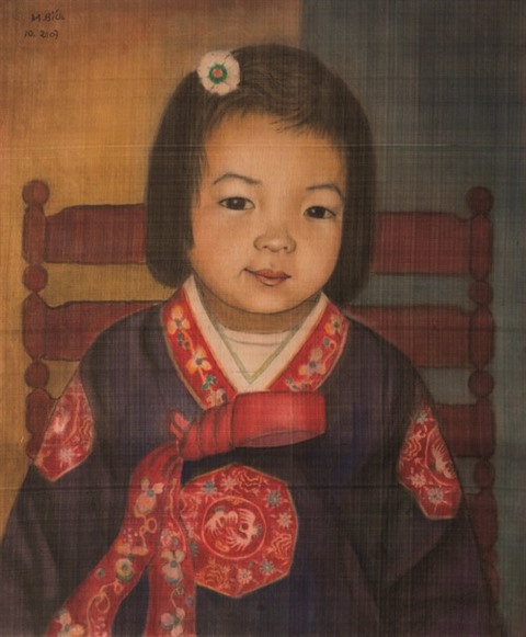 | La peinture "Em bé Hàn Quôc" (Fillette sud-coréenne) de Mông Bich. |