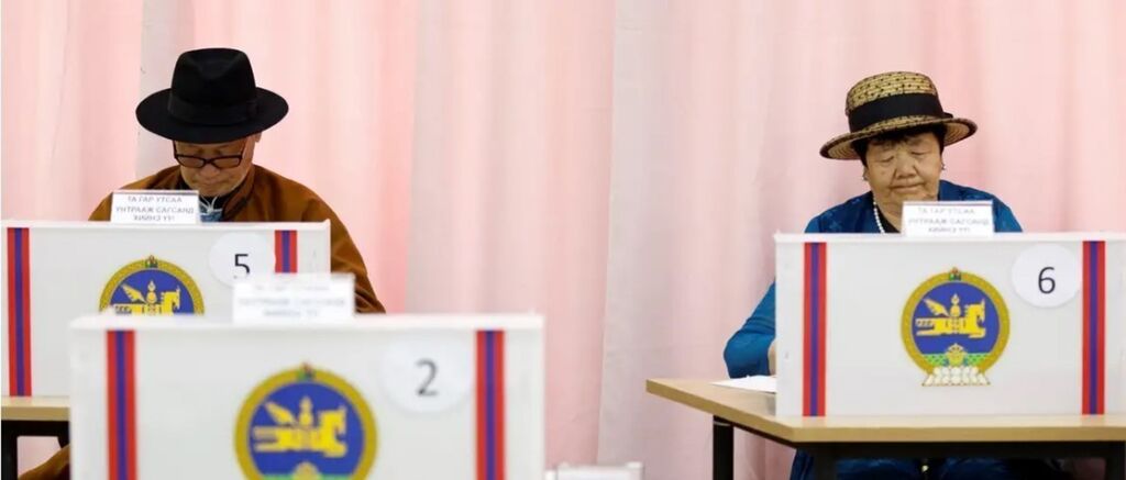 | Des électeurs mongols votent aux élections législatives à Oulan-Bator, le 28 juin. |