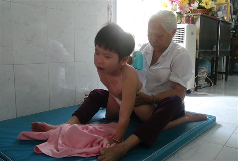 | Soins thérapeuthiques à une jeune victime vietnamienne de l'agent orange. |
