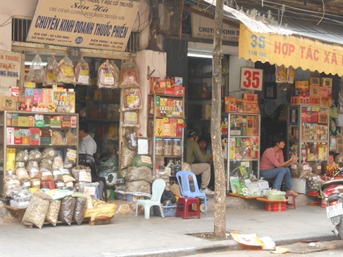 | La rue Lan Ông, en plein cœur de la capitale, où sont vendues des médicaments à base des plantes médicinales. |